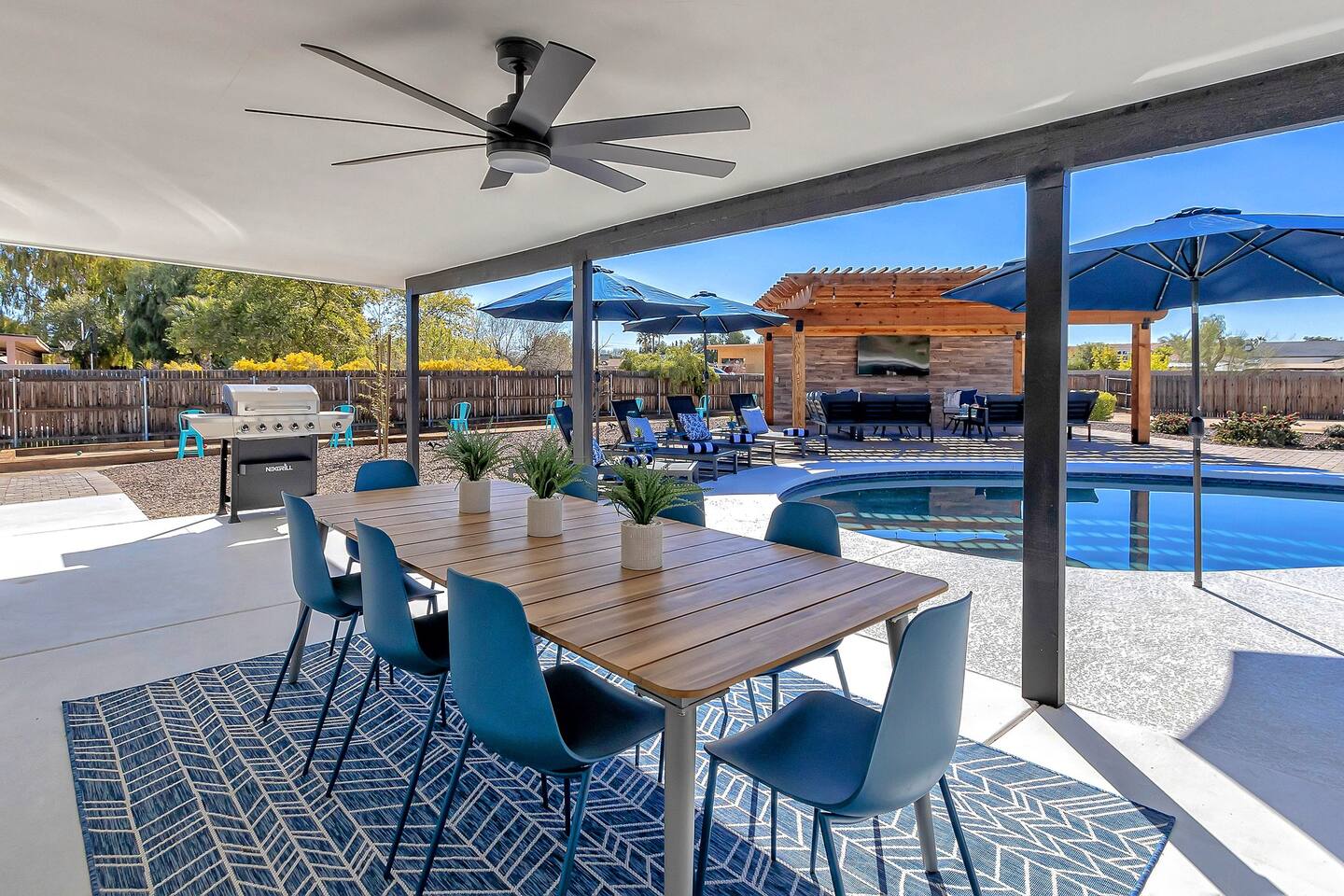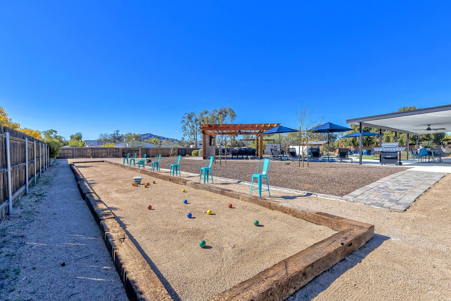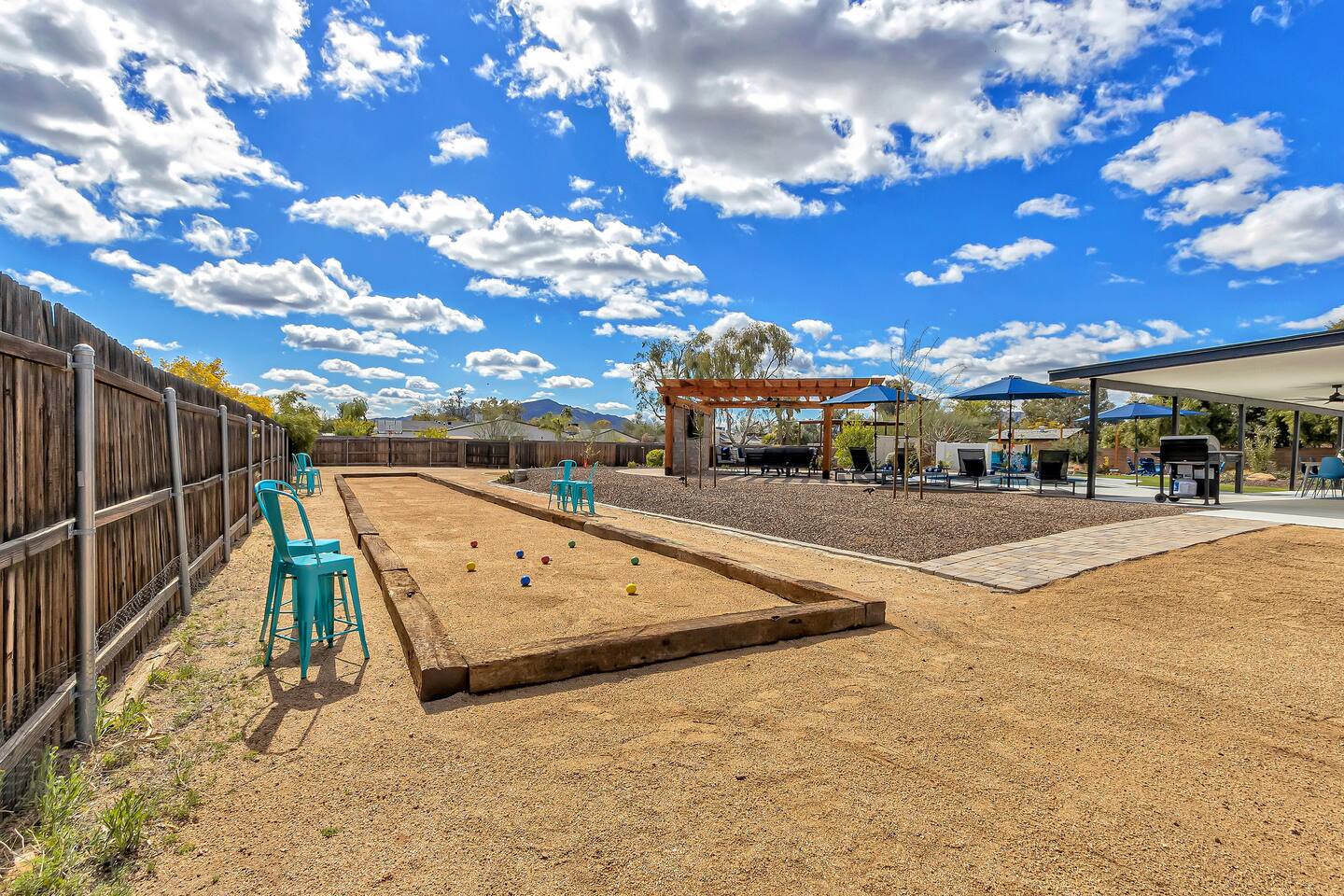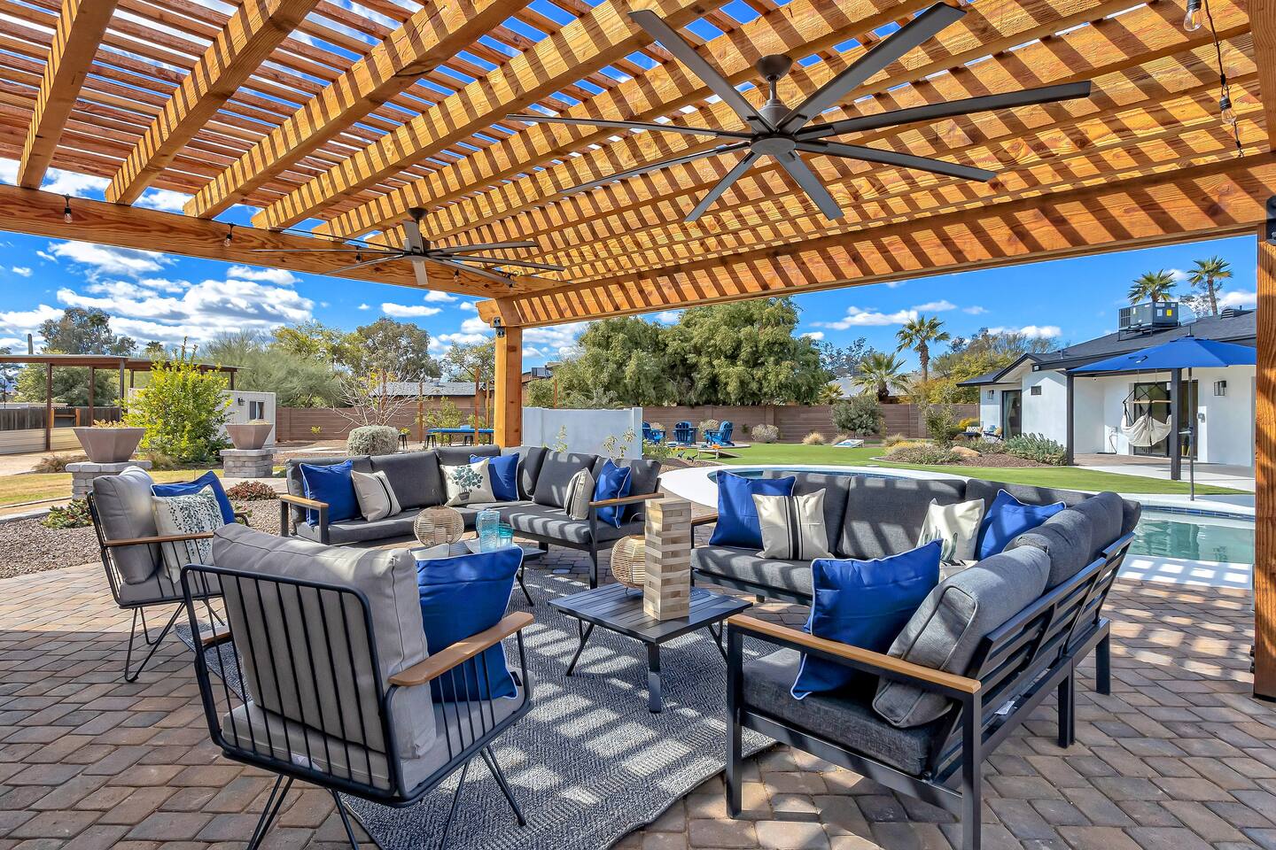 The space Sanctuary on Shea is a family friendly oasis located in Scottsdale. The property is geared towards allowing the whole family to enjoy all the sunshine Arizona has to offer! All game accessories are included with the property to enjoy * Private Pool - Child safety fence available for install upon request * Heated Pool - Available at $100/night * Hot tub * Pickleball court * Basketball court * Outdoor Ping Pong * Bocce Ball Court * Corn Hole * Horseshoe Toss * Yard Dice * Poolside Grill * Gas Firepit * Games The home is immaculately cleaned and includes all of the essentials to allow for a comfortable and enjoyable stay! Including but not limited to the items below: o Poolside Gas Grill o Cornhole Boards/Bags o All games accessories are provided o Outdoor patio table o Outdoor play area o Toaster o Drip Coffee Maker - filters and starter packs of coffee & creamer are provided o Microwave o Blender o Cooking Essentials o Pots & Pans o Silverware o Plates, Bowls, Glasses etc. o Washer/Dryer o Detergent o Board Games o Iron o Hangers o Hair Dryer o Shampoo, Conditioner and Body Wash o Bed Linens o Extra pillows and Blankets o Family owned - nearby for immediate assistance if needed Primary 1 - King size bed Primary 2 - King size bed Bedroom 3 - King size bed Bedroom 4- King size bed Bedroom 5- Two full bunk beds *All bedrooms have an ensuite bathroom* PLEASE NOTE: Pool Heating is available for $100 per night of your reservation. The pool will be heated and ready to enjoy at our time of check in time. Child safety pool fence available for installation during your stay. Minimum 7 day advance notice is needed prior to your check in date. House is monitored with exterior cameras for guest safety and security. Please contact Nick, our property manager at Copper Valley RnR Vacation Rentals, for any additional questions.