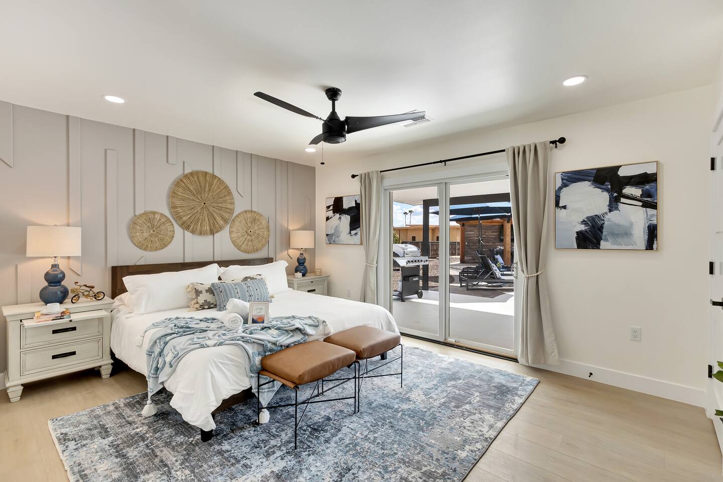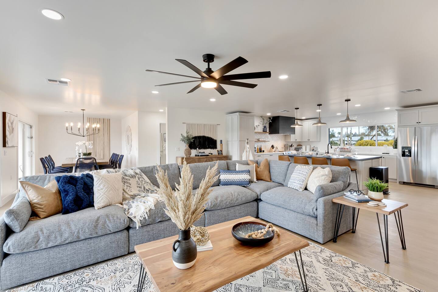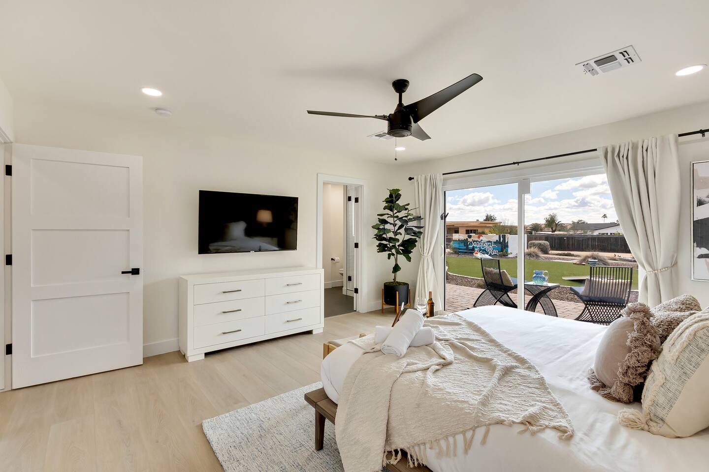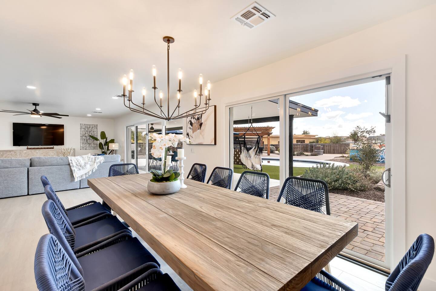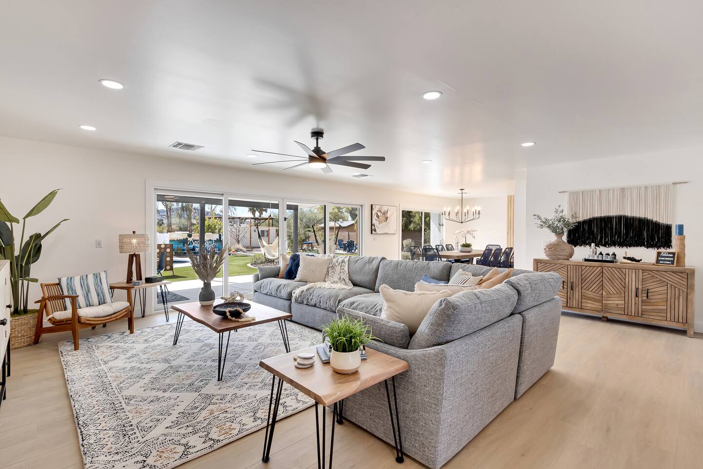 The space Sanctuary on Shea is a family friendly oasis located in Scottsdale. The property is geared towards allowing the whole family to enjoy all the sunshine Arizona has to offer! All game accessories are included with the property to enjoy * Private Pool - Child safety fence available for install upon request * Heated Pool - Available at $100/night * Hot tub * Pickleball court * Basketball court * Outdoor Ping Pong * Bocce Ball Court * Corn Hole * Horseshoe Toss * Yard Dice * Poolside Grill * Gas Firepit * Games The home is immaculately cleaned and includes all of the essentials to allow for a comfortable and enjoyable stay! Including but not limited to the items below: o Poolside Gas Grill o Cornhole Boards/Bags o All games accessories are provided o Outdoor patio table o Outdoor play area o Toaster o Drip Coffee Maker - filters and starter packs of coffee & creamer are provided o Microwave o Blender o Cooking Essentials o Pots & Pans o Silverware o Plates, Bowls, Glasses etc. o Washer/Dryer o Detergent o Board Games o Iron o Hangers o Hair Dryer o Shampoo, Conditioner and Body Wash o Bed Linens o Extra pillows and Blankets o Family owned - nearby for immediate assistance if needed Primary 1 - King size bed Primary 2 - King size bed Bedroom 3 - King size bed Bedroom 4- King size bed Bedroom 5- Two full bunk beds *All bedrooms have an ensuite bathroom* PLEASE NOTE: Pool Heating is available for $100 per night of your reservation. The pool will be heated and ready to enjoy at our time of check in time. Child safety pool fence available for installation during your stay. Minimum 7 day advance notice is needed prior to your check in date. House is monitored with exterior cameras for guest safety and security. Please contact Nick, our property manager at Copper Valley RnR Vacation Rentals, for any additional questions.